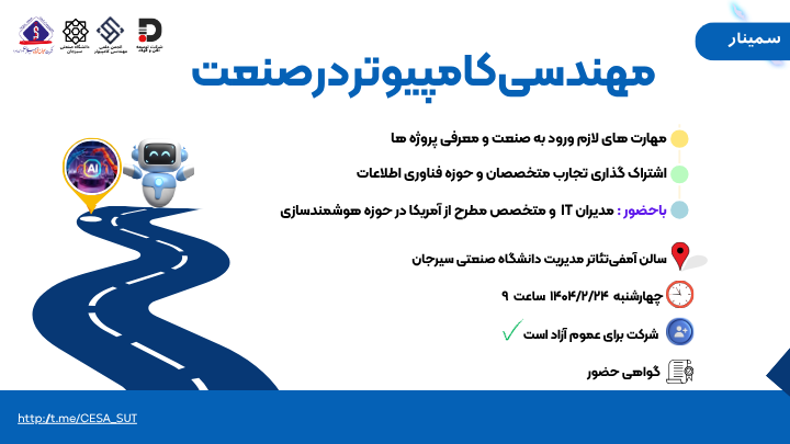 ✒️به گزارش روابط عمومی دانشگاه، روز چهارشنبه 24 اردیبهشت ماه 1404،به همت انجمن علمی مهندسی کامپیوتر، سمینار «مهندسی کامپیوتر در صنعت» با حضور اساتید، متخصصان برجسته و مدیران IT شرکتهای منطقه گلگهر در سالن اجتماعات ساختمان مرکزی دانشگاه برگزار شد.