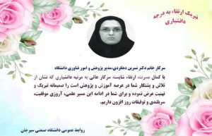 با کمال مسرت، ارتقاء شایسته سرکار عالی به مرتبه دانشیاری که نشان از تلاش و پشتکار شما در عرصه آموزش و پژوهش است را صمیمانه تبریک و تهنیت عرض نموده و برای شما در ادامه این مسیر علمی، آرزوی موفقیت،سربلندی و توفیقات روز افزون داریم